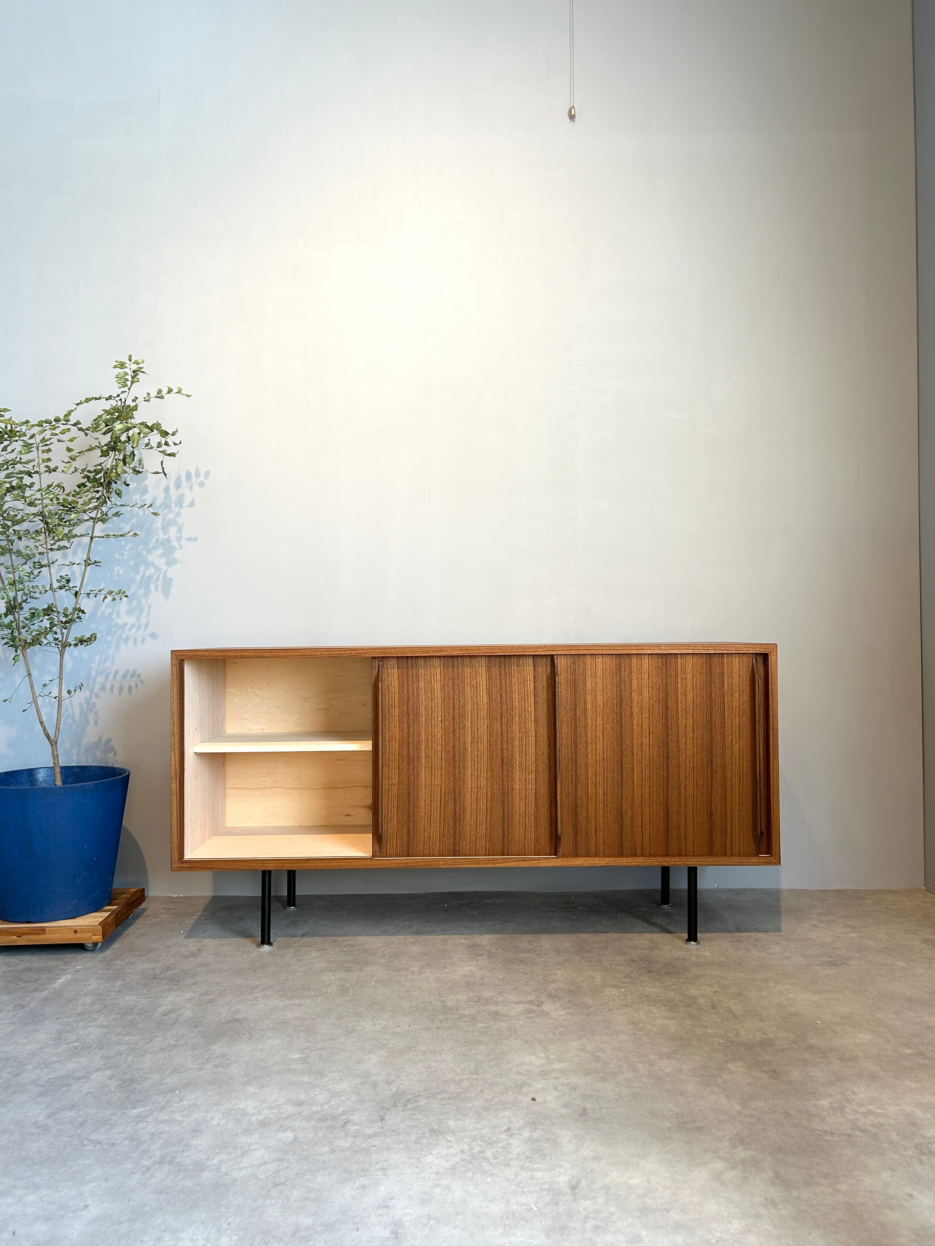 左右、真ん中がスライディングドアになります。取手部分はチーク無垢材から切り出し取り付けています。